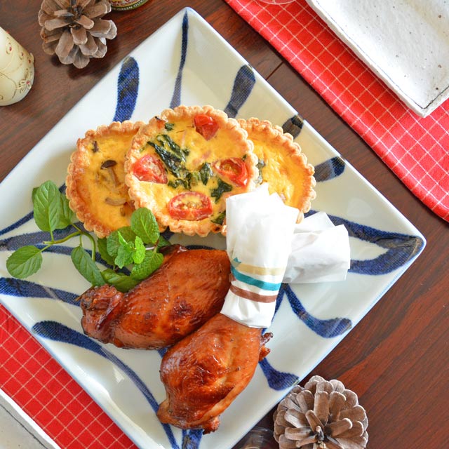 特別な日やおもてなしの際に、テーブルの主役となる28cm角の布目皿。料理が豪華に映えるので1枚あるととても重宝♪テーブルにメリハリできて素敵な演出を楽しめます。 【砥部焼 梅山窯】からくさの布目正角皿(9寸)