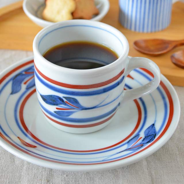 手描きらしい筆使いを活かした絵付けに、きりりとしたラインのバランスが素敵な「みつ葉」。珈琲が美しく引き立つなめらかな白磁も魅力です。お客様のおもてなしにもぴったり。 【砥部焼 梅山窯】みつ葉の切立コーヒーカップ