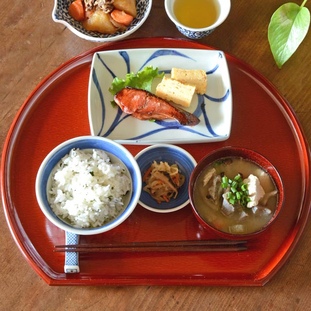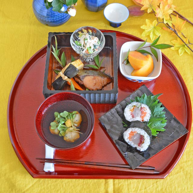 なめらかで深みある後藤塗の朱色が美しい、本格的な半月膳。ひとり分の食事をゆとりを持ってセッティングすることができるサイズです。いつもの料理も御馳走に♪香川漆器の半月膳。砥部.. 【香川漆器 後藤塗】後藤塗の半月膳(大)