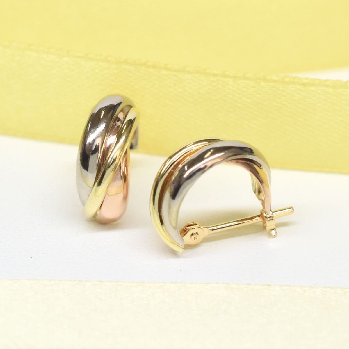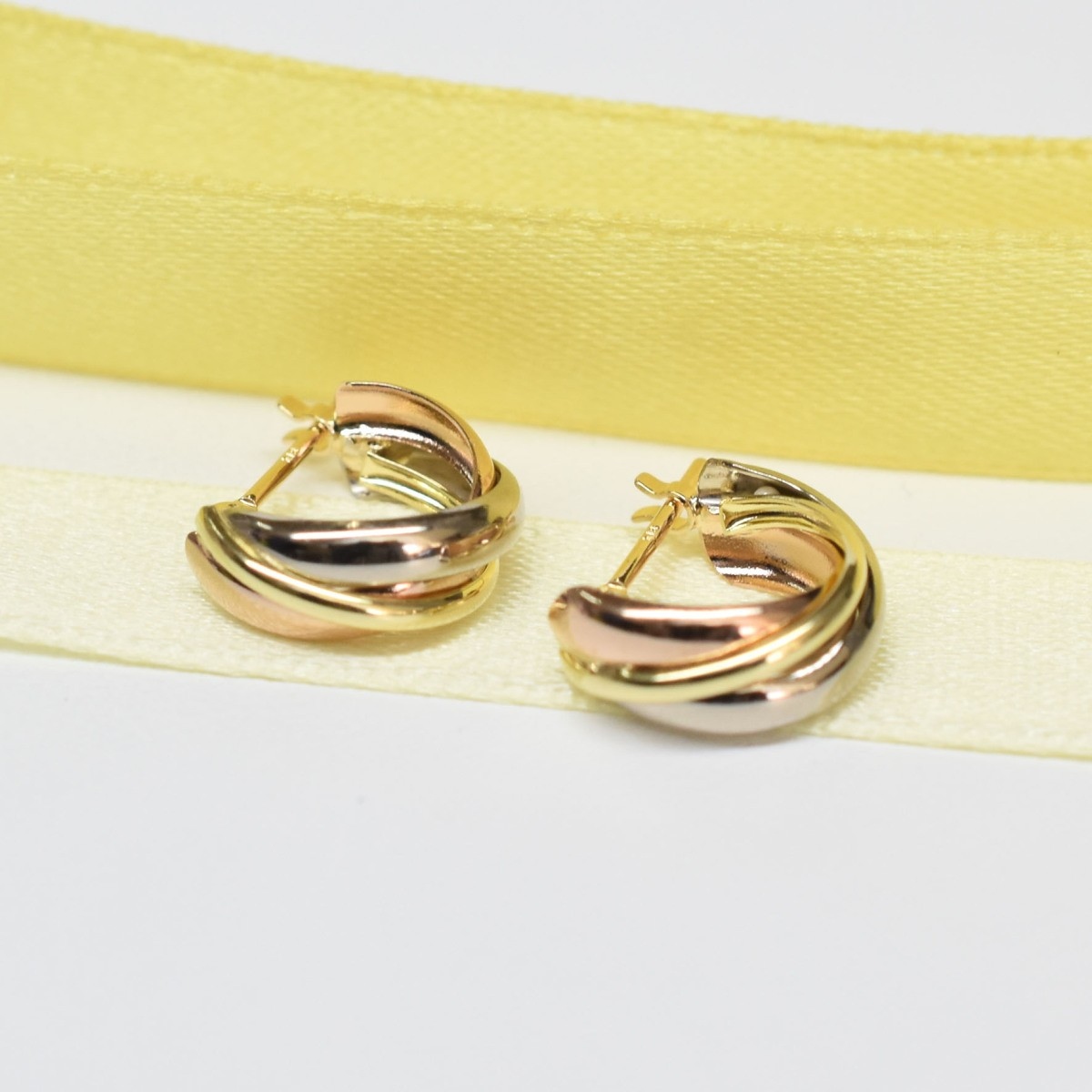 18金 トリニティー 3カラー フープピアス 7mm×15mm (2個ペア)K18 18金 トリニティー 3カラー フープピアス 4mm×10mm(送料無料!ジュエリーケース付き)