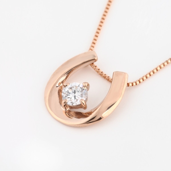 K18PG ダイヤネックレス 0.1ct 馬蹄 デザイン 【送料無料】K18 PG ピンクゴールド 18金 ダイヤネックレス 0.1ct 幸運を呼ぶ?馬蹄デザイン もちろんチェーンも18K