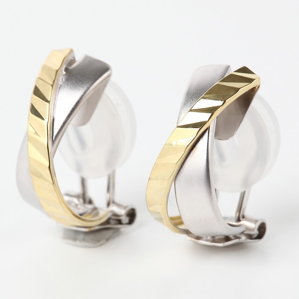 K18YG・K14WG バツ・クロスデザインイヤリング K18YG・K14WG バツ・クロスデザイン クリップ式イヤリング【シリコンカバー付き】