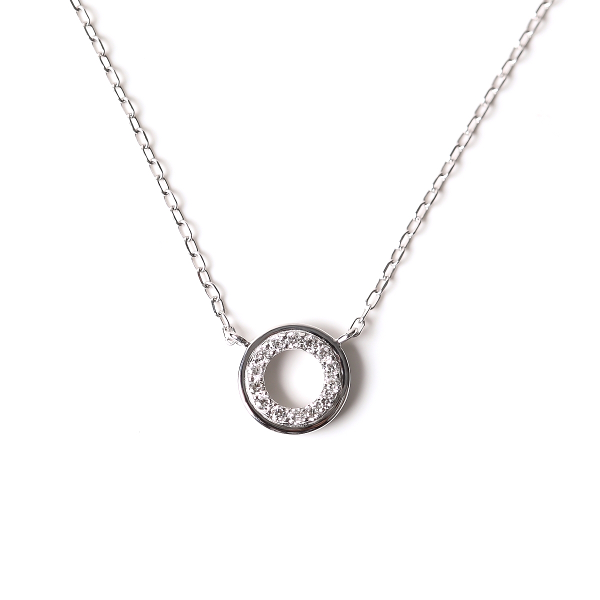 ダイヤモンド ピンクゴールド ホワイトゴールド サークルデザイン K18 18金 0.04ct ダイヤモンドネックレス サークルデザイン