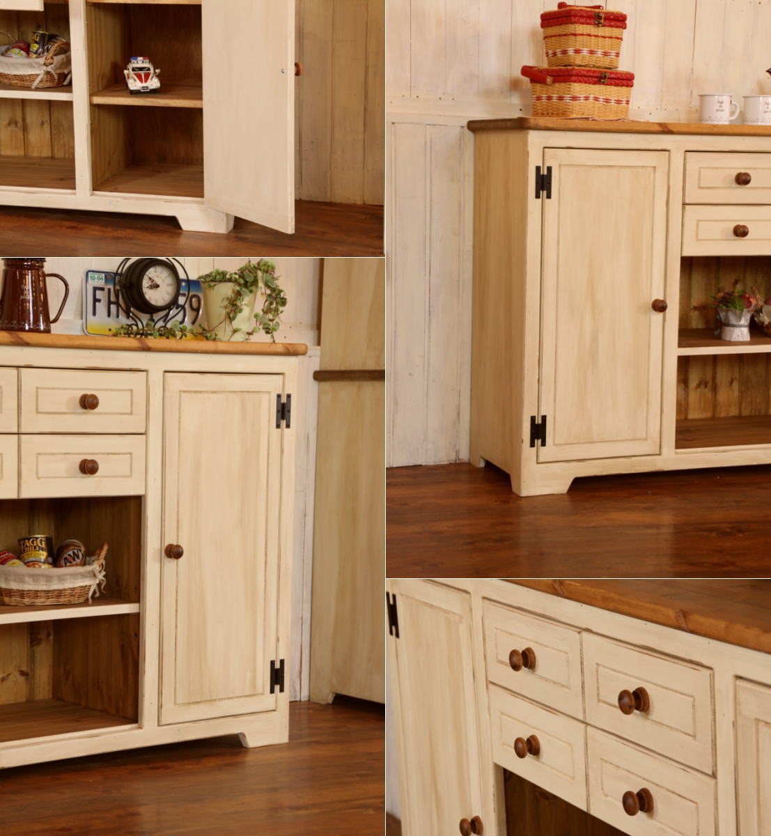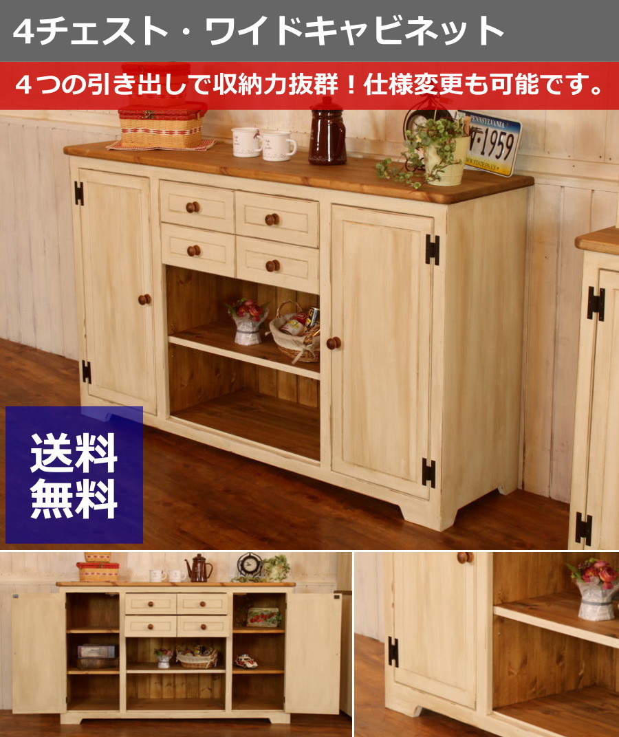 【日本製】可愛いだけじゃありません。収納抜群。サイズ変更も可能。 カントリー家具 カントリー調 アンティーク風 手作り ハンドメイド 4チェスト・ワイドキャビネット ctf cnt