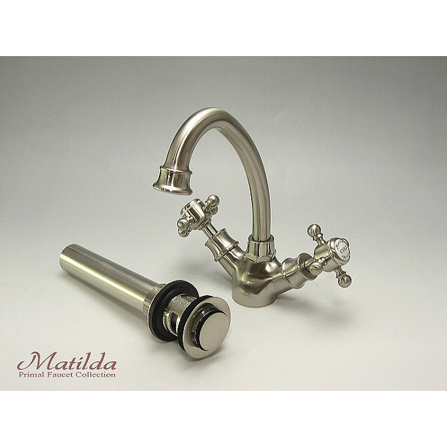 ☆ハイセンスな輸入水栓♪カントリー洗面台にもピッタリのデザインです カントリー風 輸入水栓 洗面ボウル 洗面台 シルバー アンティーク風 マチルダ水栓 アメイジア−BN 洗面用混合水栓 rfm fct