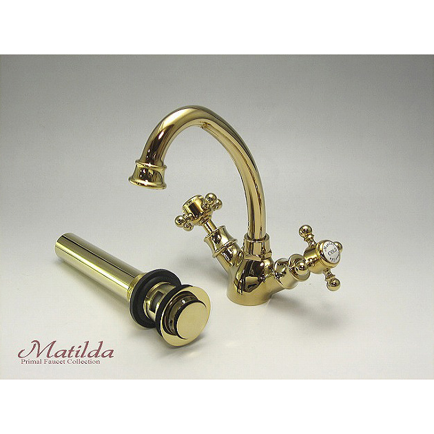 ☆ハイセンスな輸入水栓♪カントリー洗面台にもピッタリのデザインです 輸入水栓 洗面ボウル カントリー風 アンティーク風 クラシック風 ゴールド マチルダ水栓 アメイジア PB 洗面用混合水栓 rfm fct