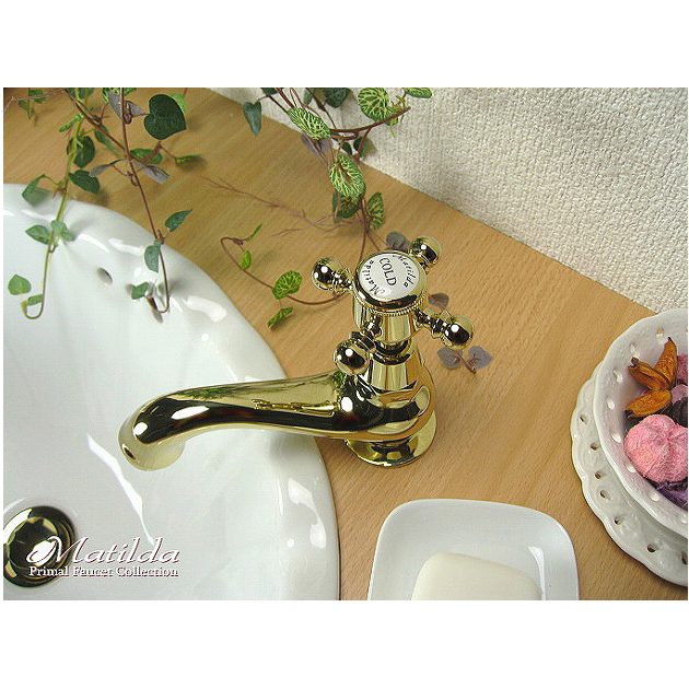 ☆かわいい輸入水栓♪カントリー洗面台にもピッタリのデザインです 輸入洗面ボウル 輸入水栓金具 ゴールド カントリー アンティーク ナチュラル クラシック マチルダ水栓 サブリナ PB【Sabrina-PB】 単水栓クロスハンドル rfm fct