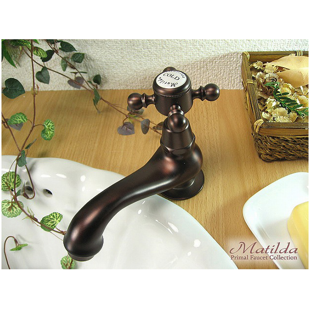 ☆かわいい輸入水栓♪カントリー洗面台にもピッタリのデザインです アンティーク調 クラシック調 輸入水栓 レバー 洗面台 マチルダ水栓 サブリナ ORB【Sabrina-ORB】 単水栓クロスハンドル rfm fct