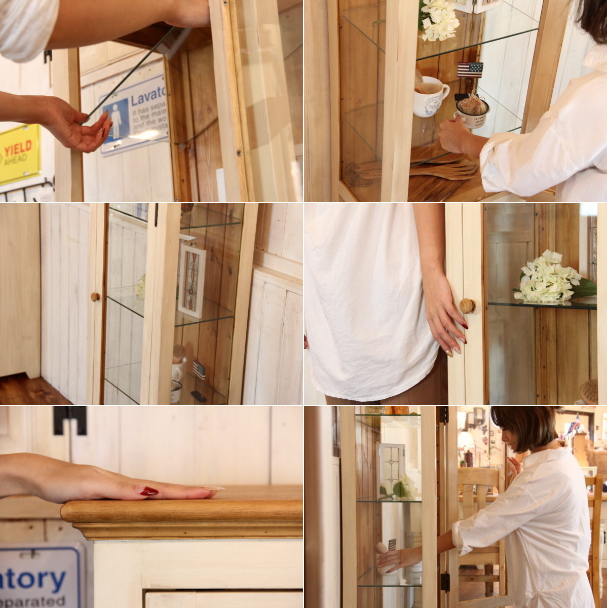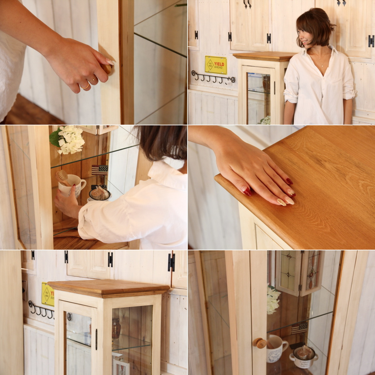 シャビー感たっぷり。ガラスドアがお洒落なキャビネット。ディスプレイにもぴったり。 カントリー家具 シャビースタイル カウンター ナチュラルカントリー アンティーク風 NC・コレクションガラスキャビネット ctf cnt