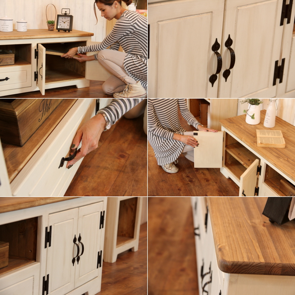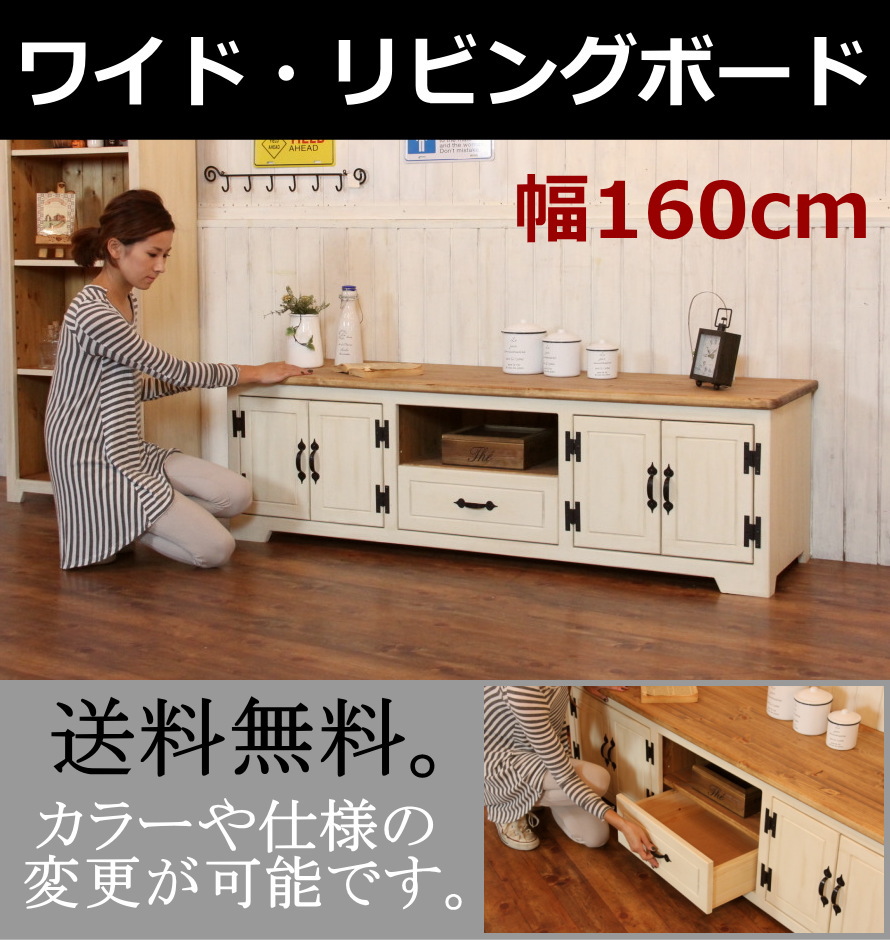 【日本製】引き出し付きで便利なテレビボード。サイズ変更も可能です。お選び頂いたお色によって雰囲気が変わるので、テーマに合わせてお選び頂けます♪ カントリー家具 テレビ台 エレガンス フレンチ クラシック 木製品 収納 スペース アンティーク ナチュラル 送料無料 NCワイド・リビングボード・1600 ctf tbd