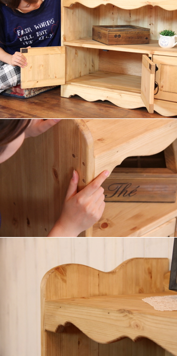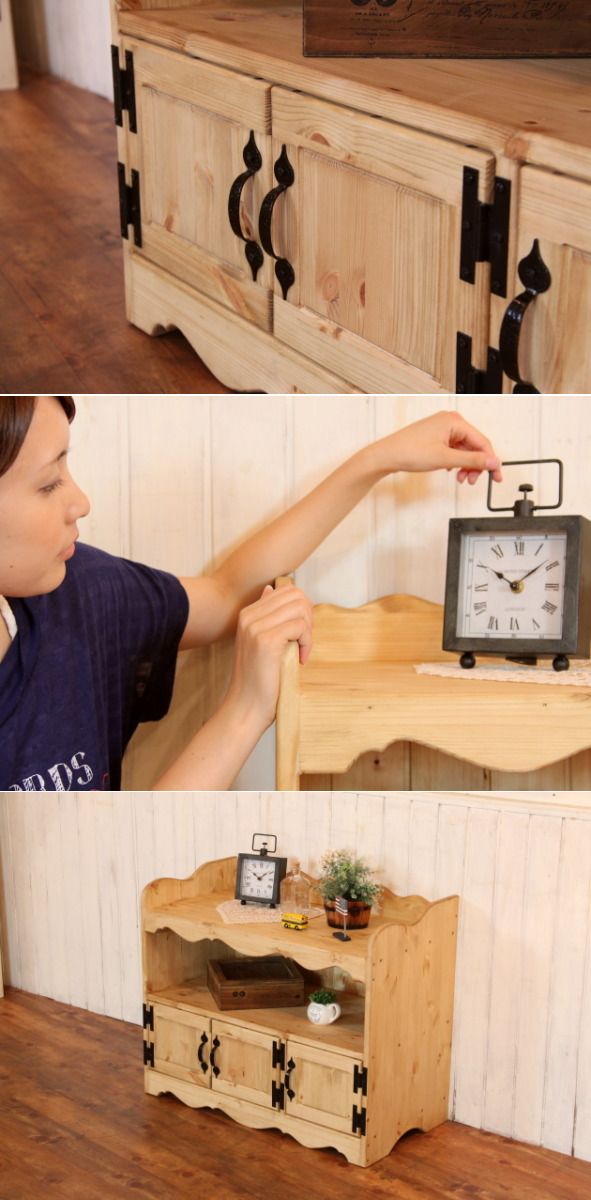 コンパクトで可愛い。サイズ変更も可能です。 ナチュラルカントリー キャビネット ハンドメイド オーダーメイド カントリー調 【日本製】3ドア・シンプル・オープン・キャビネット・W800 ctf cnt