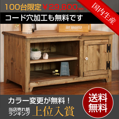 日本製。国内自社工場で制作。100台限定の大特価。スリムなテレビボード。音楽プレイヤー等を収納しても便利!ご自由にお使いください♪レビューのご記入で送料無料。 送料無料 カフェ風 イングランドスタイル サンタフェ 無垢材使用 木製 DVD ブルーレイ 収納 カントリー家具 テレビボード ローボード ナチュラル テレビボード・W900 ctf tbd