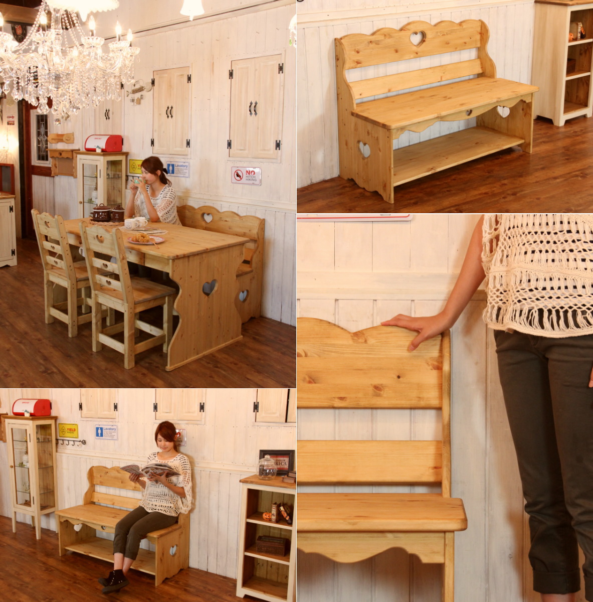 【日本製】可愛いダイニングベンチ。サイズ変更も可能です。 カントリー家具ベンチ オーダー家具 送料サービス COUNTRY・ダイニングベンチ・手すり無しタイプ