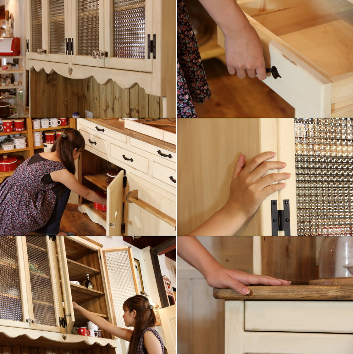 迫力満点のカップボード。シャビー感たっぷりのNCカラーがお洒落。サイズ変更も可能です。 カントリー食器棚 アンティーク調 ナチュラルカントリー 手作り オーダー NC・4ガラスドア・カップボード・W1400 ctf cbd