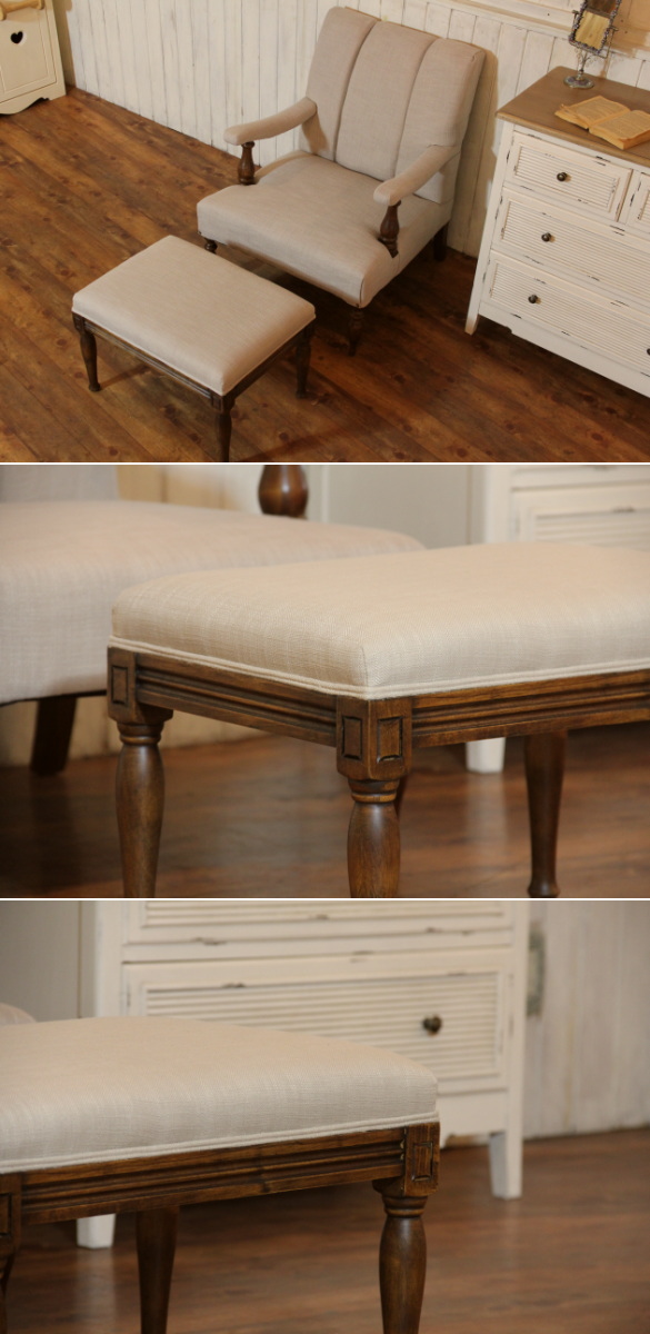シンプルなベージュの生地がお洒落なスツール。オットマンとしてもご使用いただけます。 ソファ ベンチ イス カントリー家具 ナチュラル家具 スツール・Beige(ベージュ) c-m