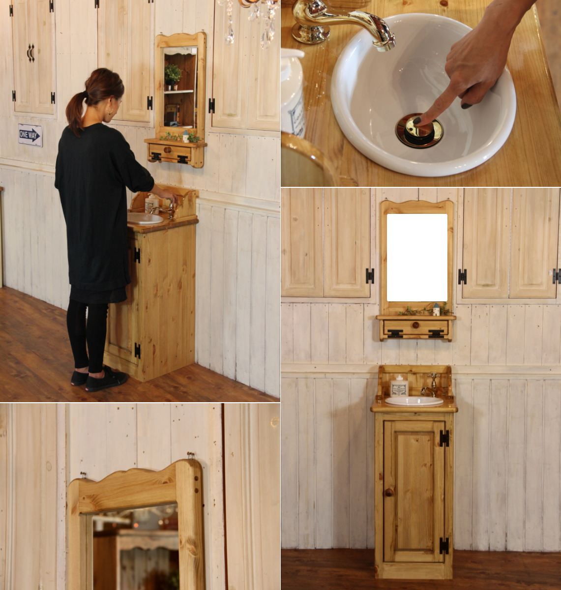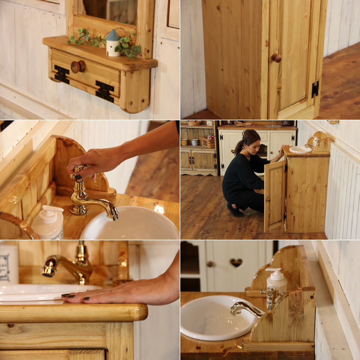 スリムな洗面台。可愛いミラーつきです。サイズ変更も可能。【日本製】 カントリー家具 オーダー家具 手作り家具 洗面台 ドレッサー COUNTRY・スリムウォッシュスタンド・ミラー付き(洗面台W400)rfm wct