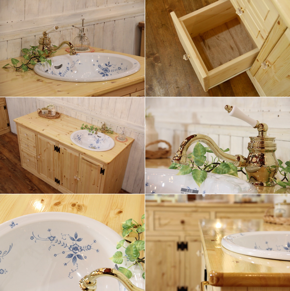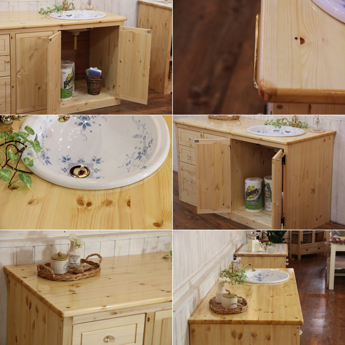 幅1440mmで広々使える洗面台。サイズ変更も可能です。【日本製】 カントリー家具 オーダー家具 手作り家具 洗面台 ドレッサー COUNTRY・3チェスト・ウォッシュキャビネット(洗面台W1440)rfm wct