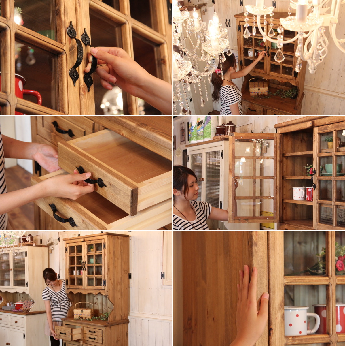 可愛いだけではございません。使い勝手と収納力も抜群。サイズ変更も可能です。【日本製】 カントリー家具 オーダー家具 手作り家具 COUNTRY・2ガラスドア・カップボード・DW ctf cbd