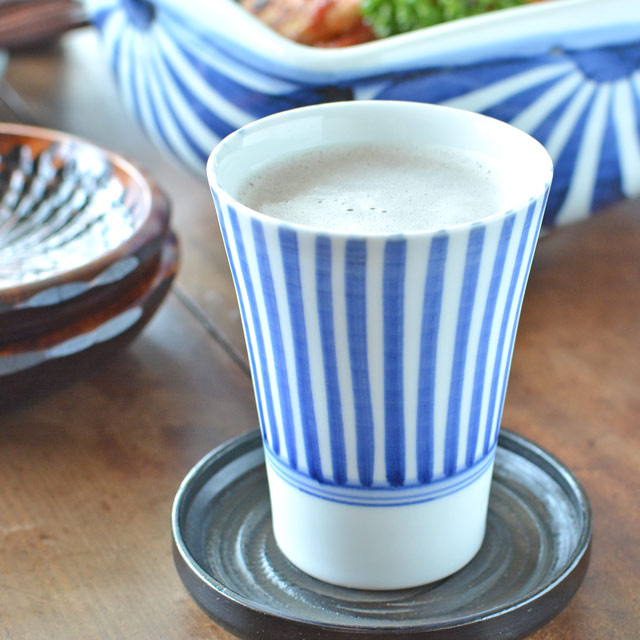 ぽってりとした手描きらしい味わいが人気のとくさ柄に「タンブラー」が仲間入り♪ビールにジュースにお茶に・・と気軽に楽しめる素敵なカップです。 【砥部焼 千山窯】とくさ柄のタンブラー